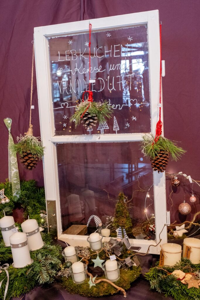 Der Förderverein St. Ursula sorgte mit Kaffee und einer reichhaltigen Kuchenauswahl für gemütliche Stimmung, die zum Verweilen einlud. Ganz besonderen Dank geht hier an die vielen Kuchenbäcker und -bäckerinnen sowie an die Kaffee- und Getränkespenderinnen . Nicht nur Handwerk, sondern auch Kunst konnte gekauft werden. Anneliese und Peter Jörg hatten eine kleine Ausstellung mit Werken von Herbert Jörg gestaltet, die zugunsten des Fördervereines erstanden werden konnten. Auch ihnen gebührt unser Dank! Insgesamt kam ein Betrag in Höhe von ca. 1.250 € zusammen, der der Renovierung unserer Ursula zugutekommt.